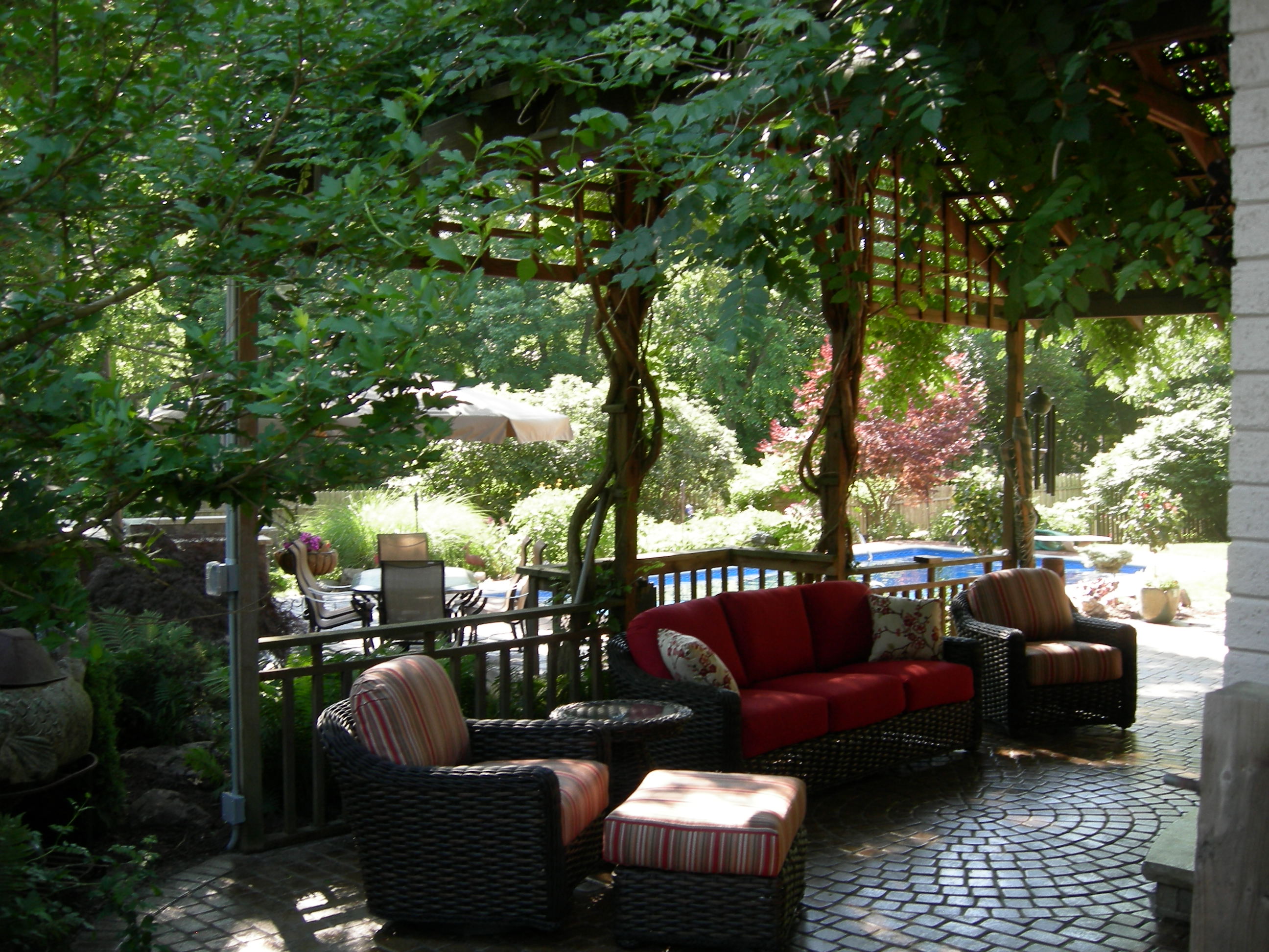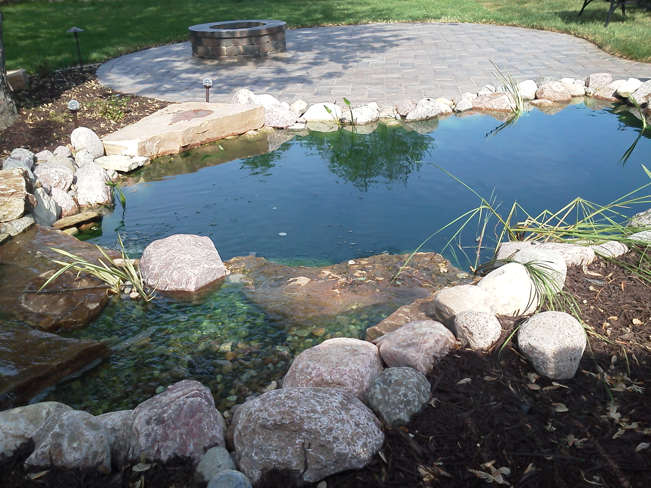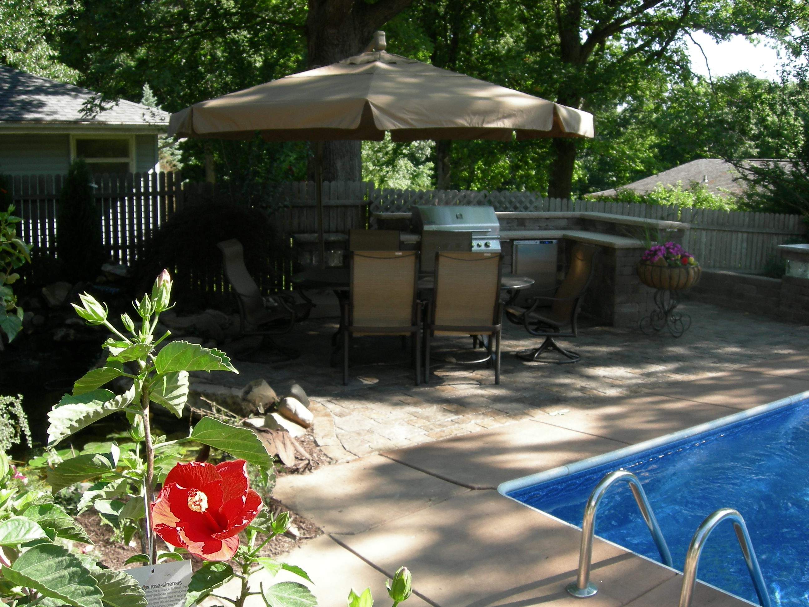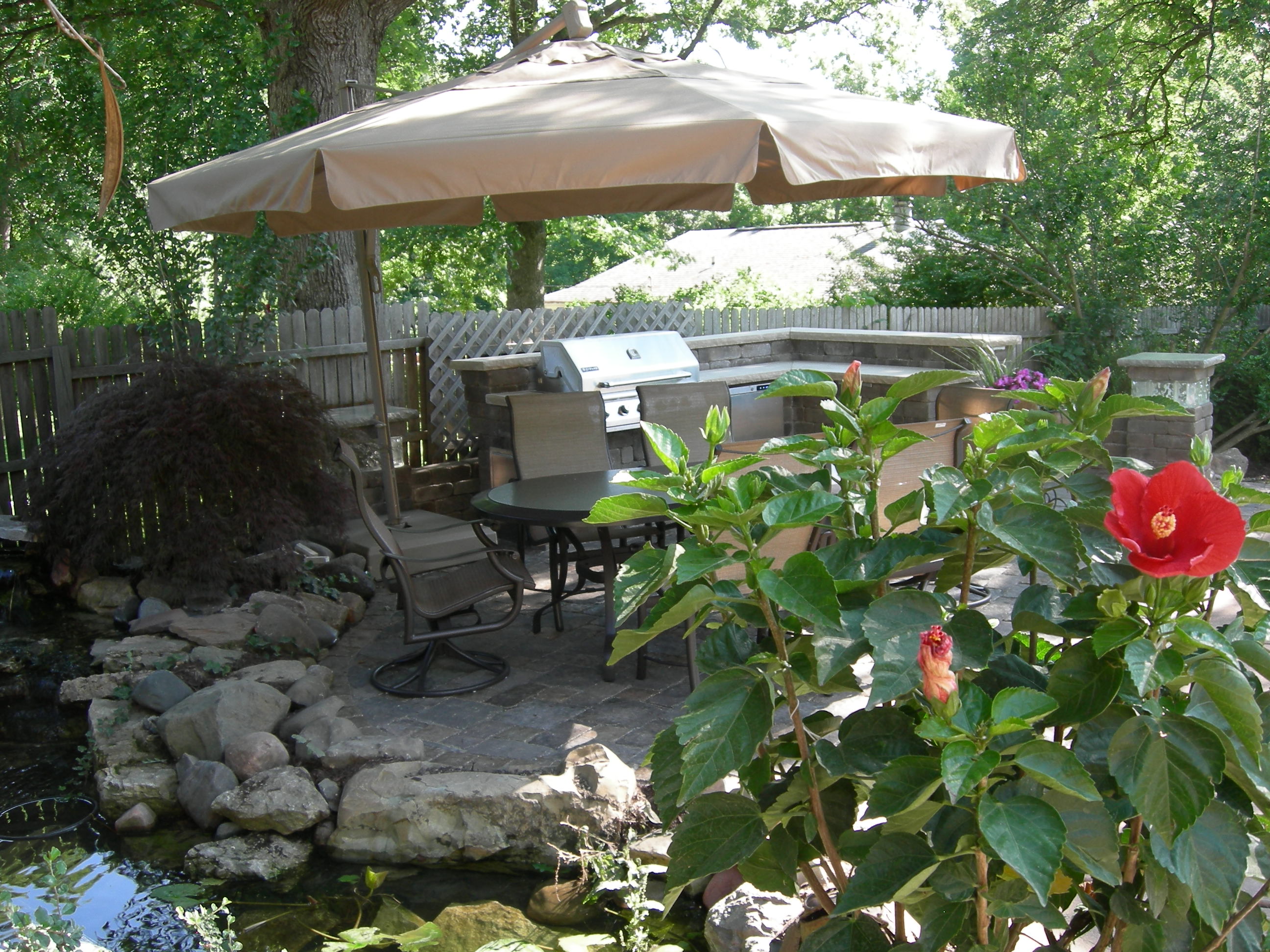 grill and refrigerator. Koi pond with waterfall. 2 separate paver patio areas for dining and relaxing !