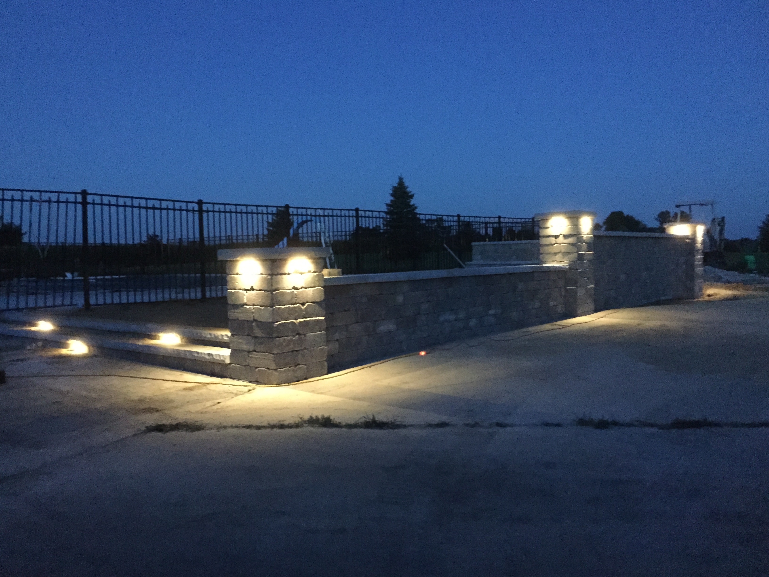 walls constructed with Bravado Modular Block. Stairs are custom cut and inlaid into patio.