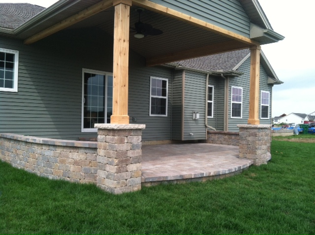 Brussels coverd patio with Cedar and stone pillars