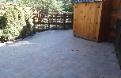 Patio constructed with Paveloc Brick in Woodland color, with a three stone herringbone pattern. Stairs and